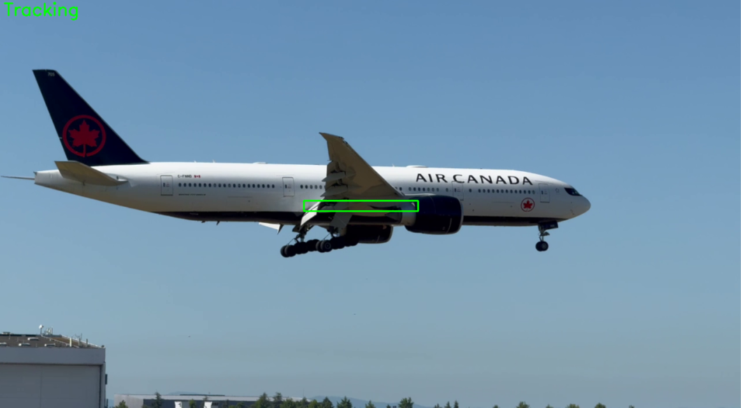 A live tracker processes frames in real time. Two strategies are evaluated and compared in the following airplane scene: keeping a fixed template from the first frame (left picture), and updating the template every frame using the current ROI (right picture). Updating the template adapts to appearance changes (lighting or deformation), but it can also propagate drift when one frame is misaligned.